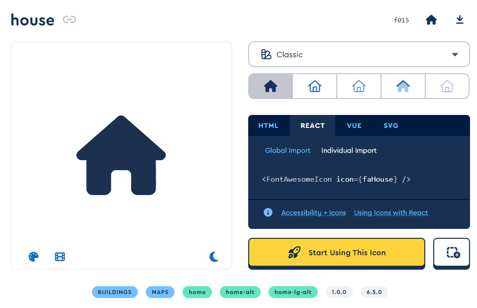 <FontAwesomeIcon icon={faHouse} />